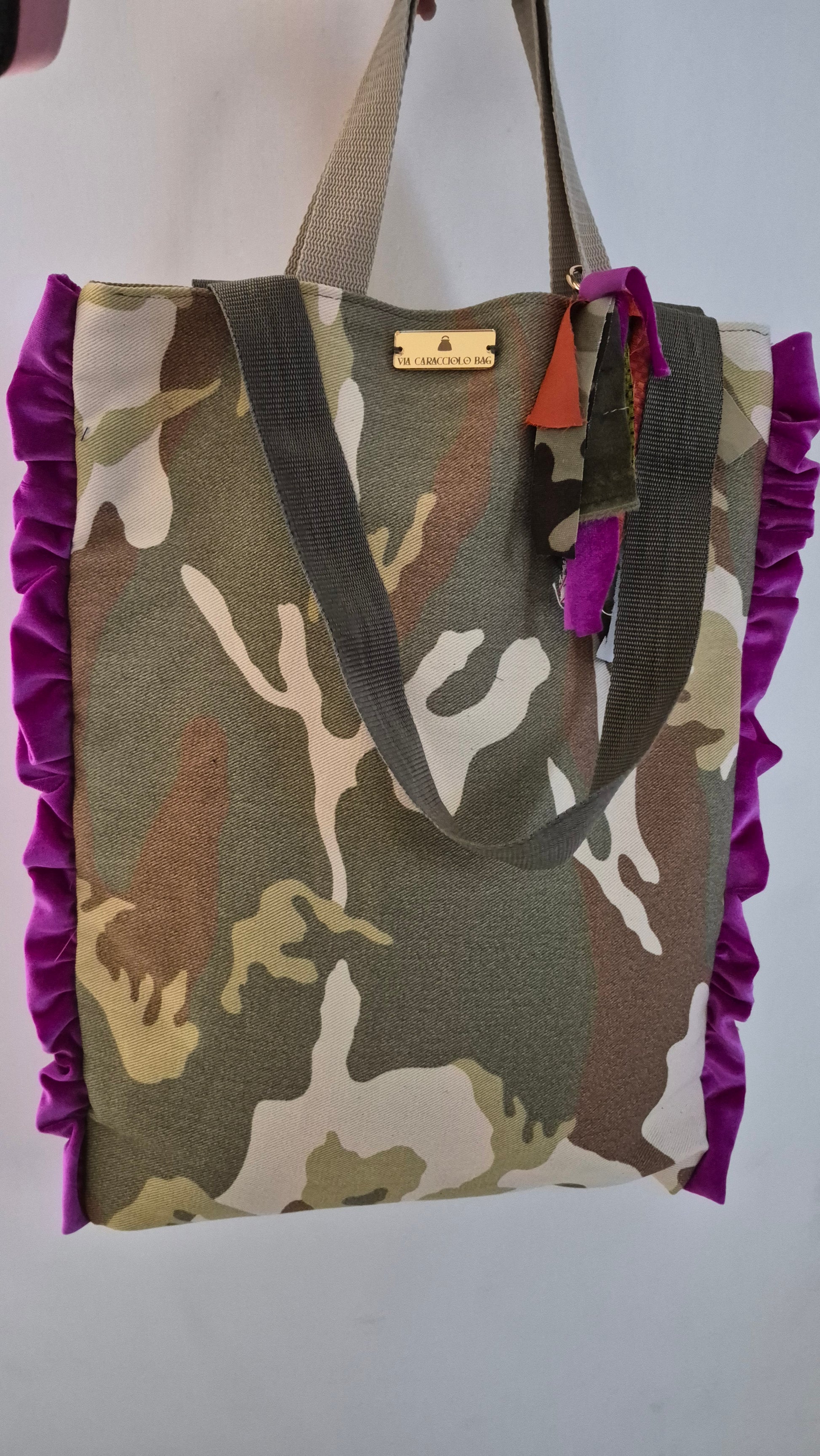 Shopperchic in tessuto mimetico con voilà in velluto color fucsia/ciclamino