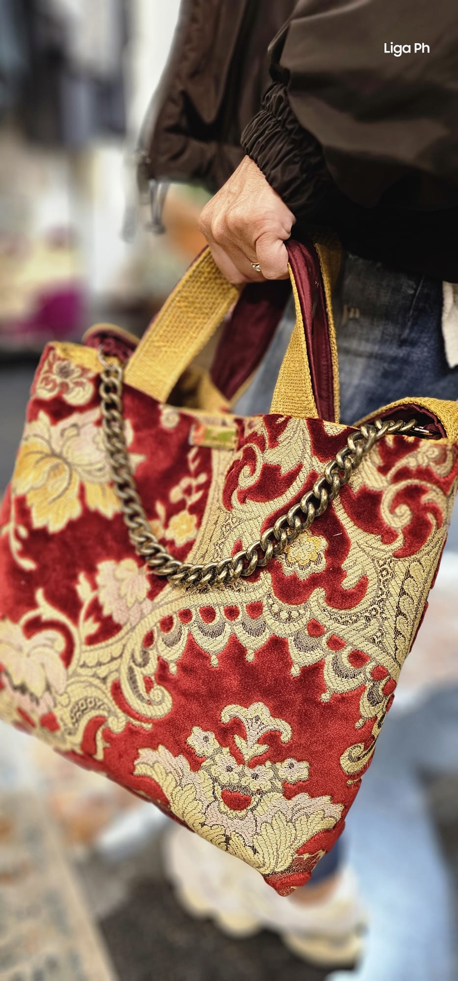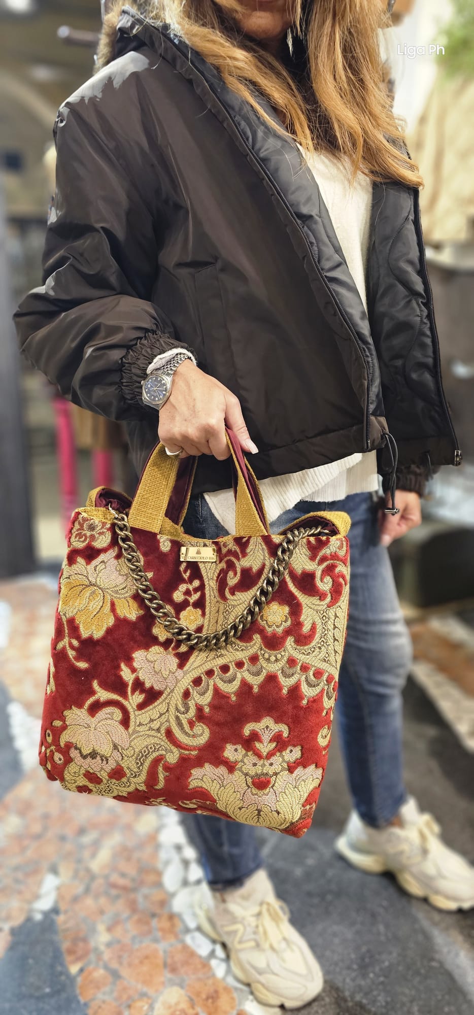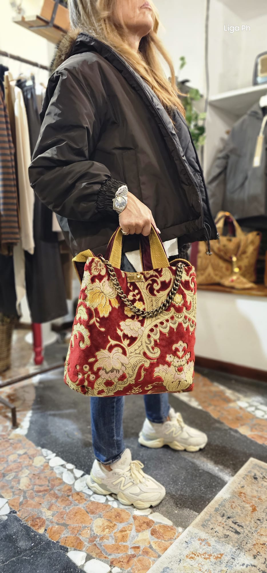 Shopperchic in velluto broccato bordeaux munita di catena gioiello
