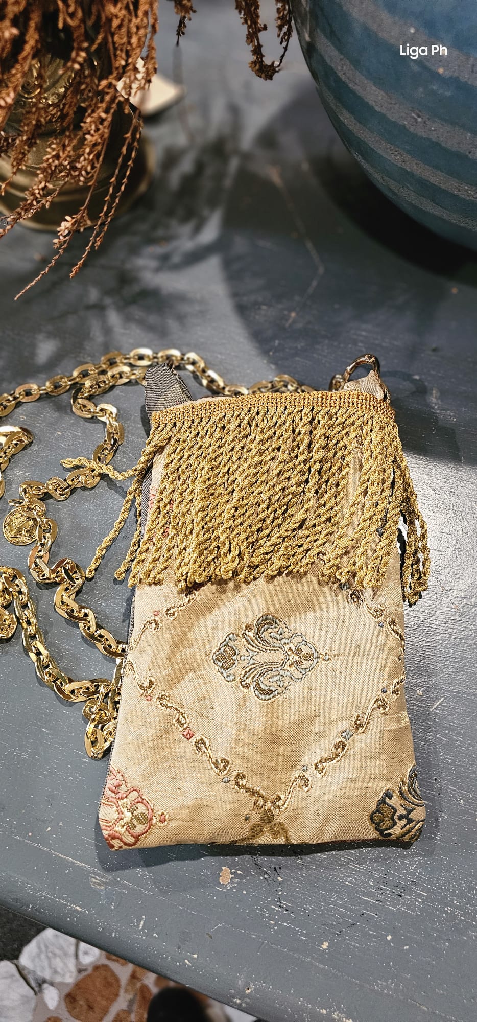 Portacellulare in tessuto damascato dorato San leucio con frangia dorata