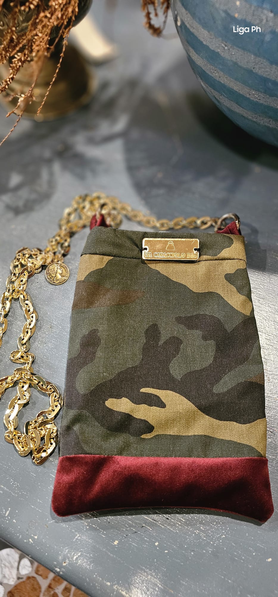Tessuto mimetico e velluto bordeaux